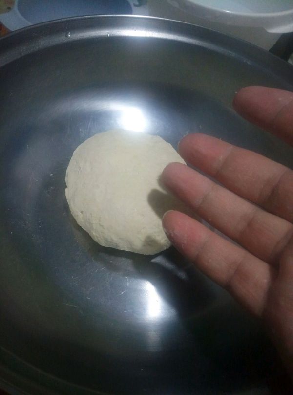 和面,着渐加水,不可一次性加水,活成絮状,在将絮状柔和一起,略有絮状后,手蘸水开始和面,每次一点达到盆光面光,手光,如图,醒面十分钟,在揉面,这会就感觉上劲了