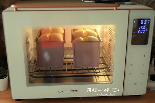 烤箱提前用上火160下火200度预热好,然后放中下层,也就是让吐司盒在整个烤箱的中央位置受热即可,烘烤差不多35分钟就可以了。我这个温度就没怎么盖锡纸了,你的烤箱如果温度高一些最后还是需要盖下的。