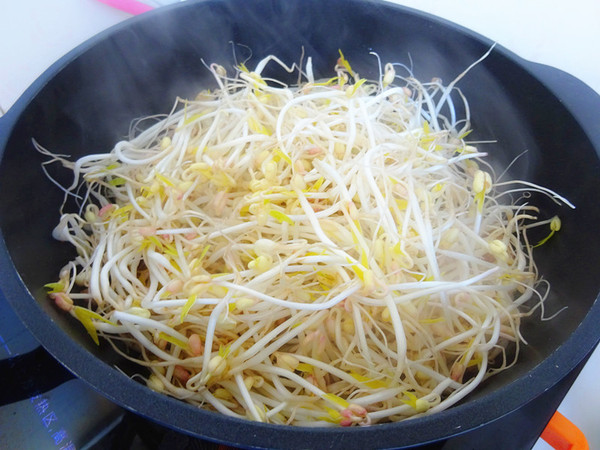 放入洗干净的豆芽菜,大火翻炒
