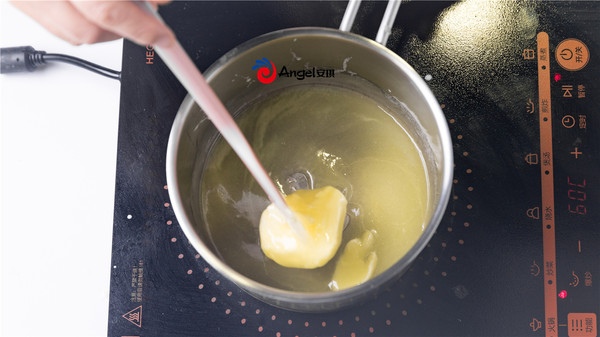 奶锅开中火,加入黄油、糖、糖浆和奶油,加热至浓稠冒大泡