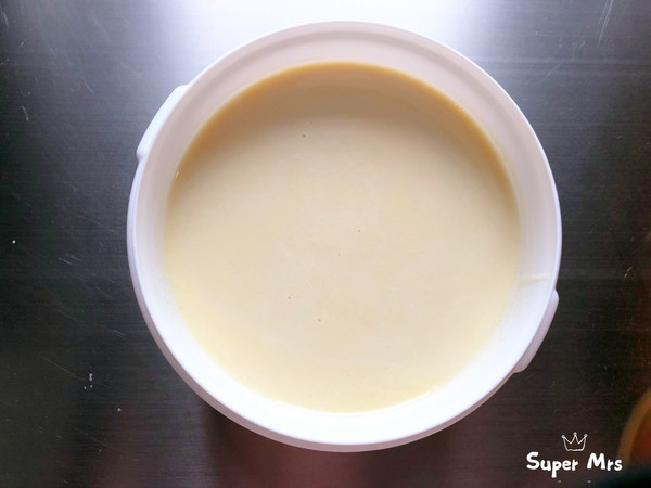 加水调成稀面糊-酸奶流动状(一般我会过筛一遍,防止有疙瘩)。