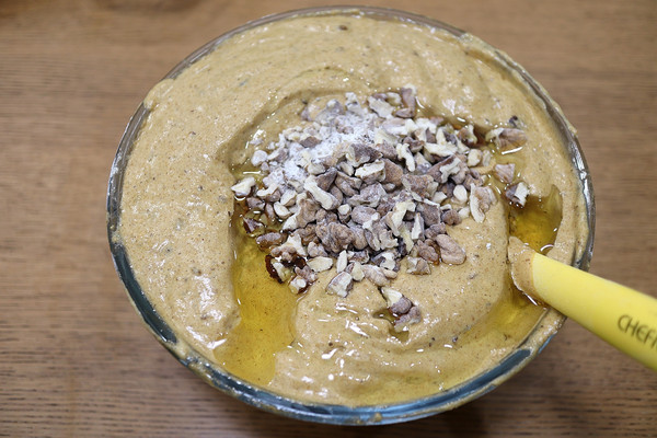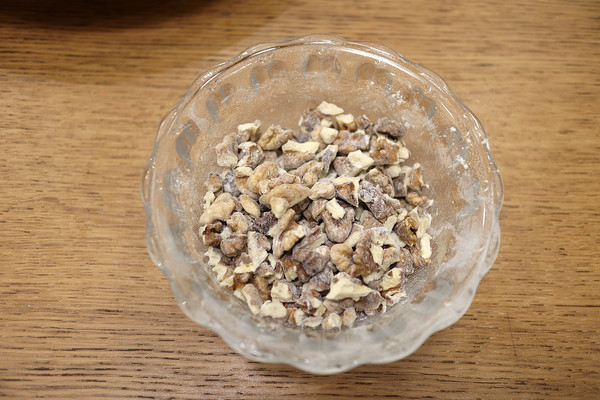 用电动打蛋器高速打发,一开始蛋液与红枣碎是不融合的,红枣碎沉在盆底;