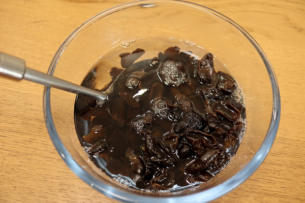 这是泡发了15分钟的木耳,不比泡了几个小时的效果差,每一朵都舒展开了;