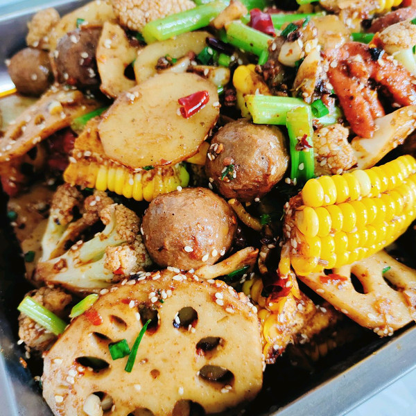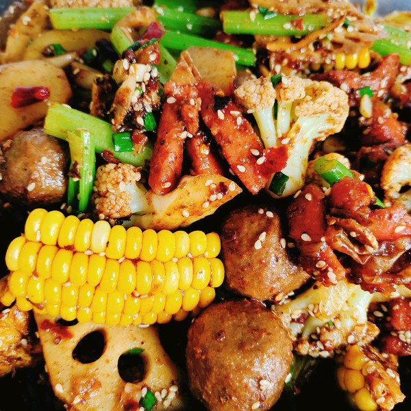 起锅前放入适量的白芝麻和葱花翻炒均匀即可!麻辣鲜香,超级过瘾!