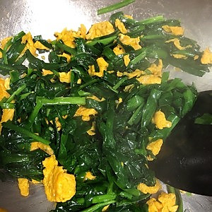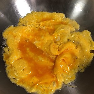 鸡蛋推到旁边,下韭菜,放盐,糖,蚝油,翻炒2分钟左右出锅。