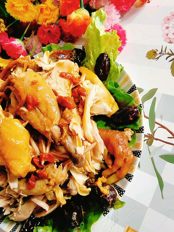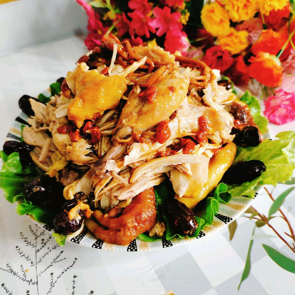 手清洗干净,把鸡肉撕成条!