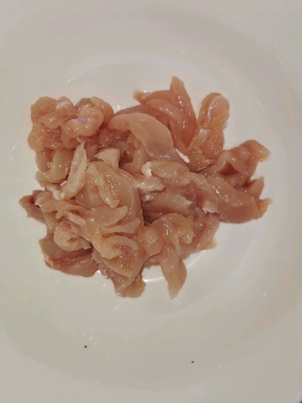 准备四块鸡里脊清洗干净(鸡胸肉也可以 ),切成条状