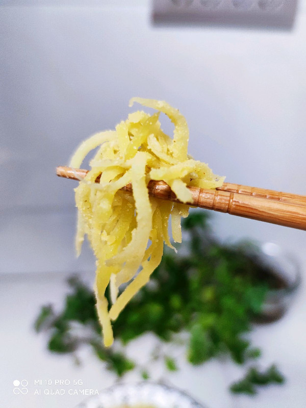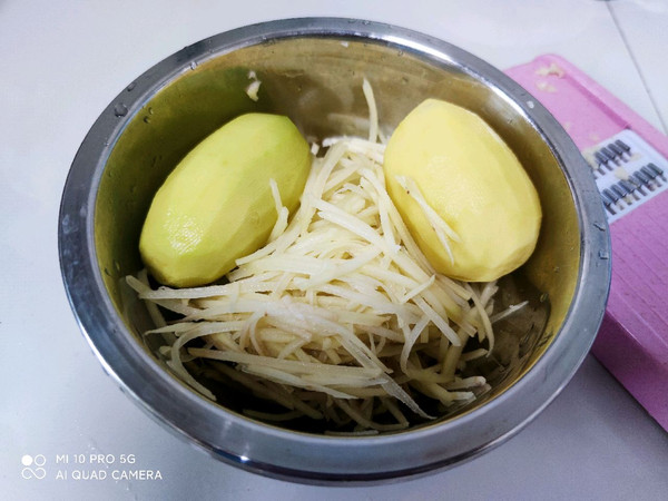 土豆削皮,洗净,用擦丝器擦成细丝。