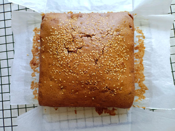 这个配发是6寸模具的~记得垫烘焙油纸或者抹油~震出气泡,撒白芝麻~
