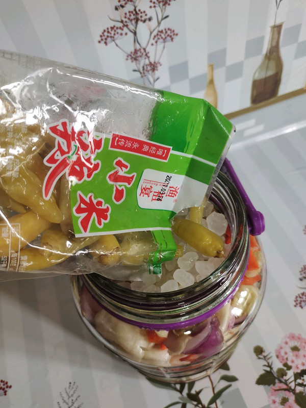 放入一瓶矿泉水!(没有矿泉水的也可以放入晾凉的凉白开进去!个人觉得用矿泉水泡出来的泡菜,滋味更好吃!)