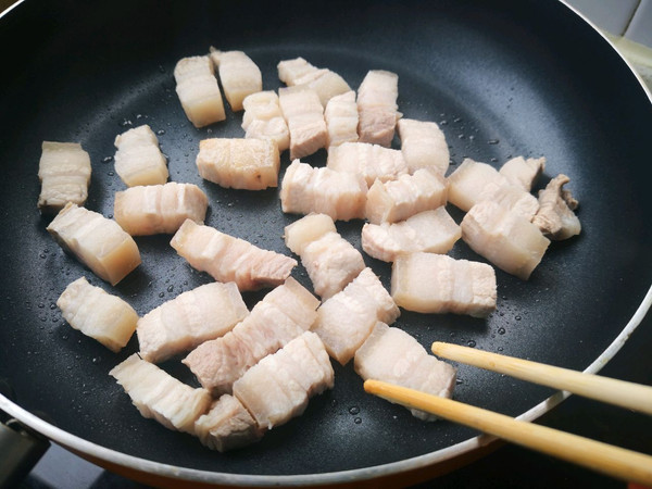 海带热水泡发切小片,五花肉切块,姜切片,蒜去皮。