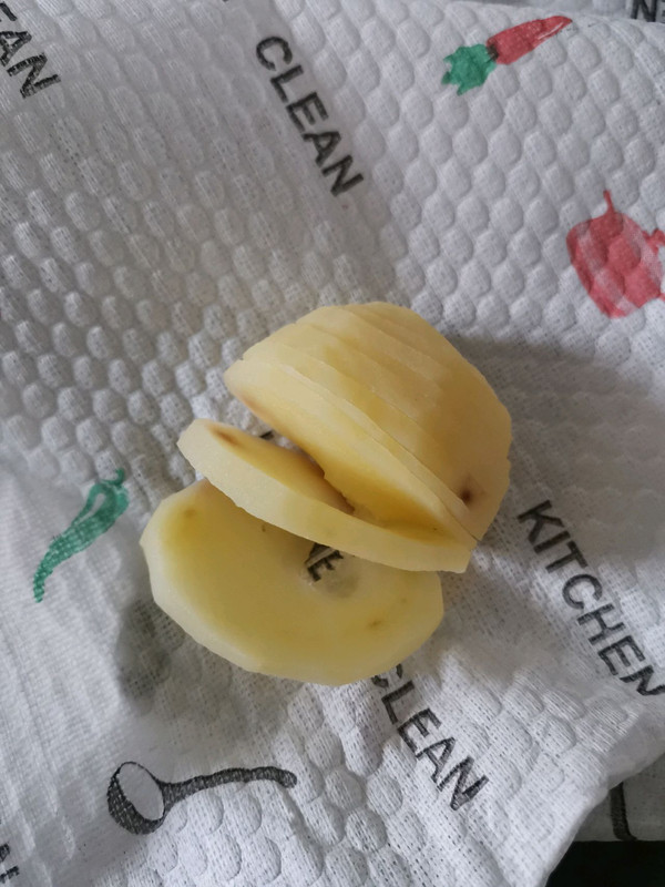 直至旋转到土豆最底部,整个土豆切成螺旋形