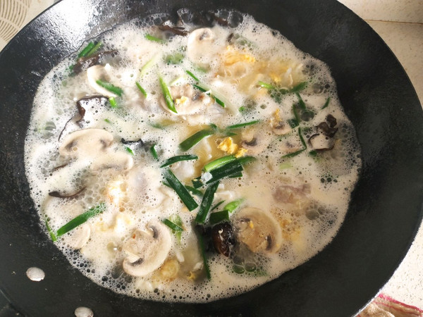 鱼片加葱段、姜丝、料酒、盐、鸡精调味。木耳、火腿片、香菇、等时令蔬菜适量切菱形片备用。