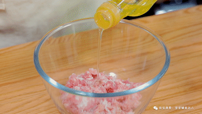 肉末当中加入油、鲜菇粉、酱油、葱花和盐。这个馅料的口味可以根据自家平常吃的来,宝宝喜欢为准。