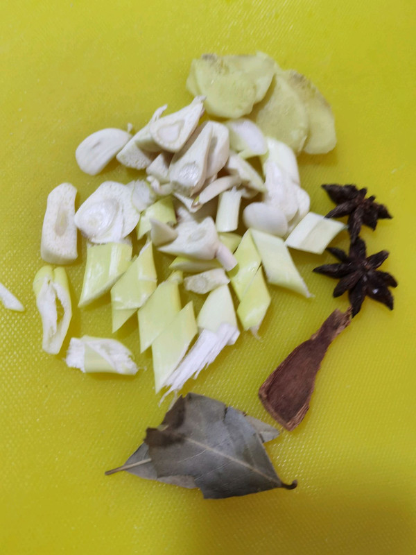 准备好所需调料葱,姜,蒜,八角,桂皮,香味,备用。