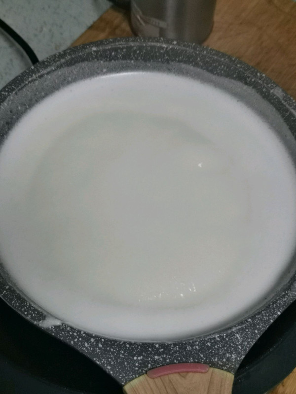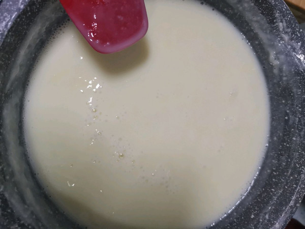 牛奶煮开后,转小火,加入糖,多搅拌防糊底