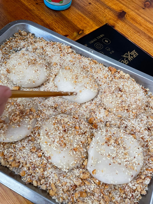 撒入适量白砂糖和白芝麻增香,丰富口感