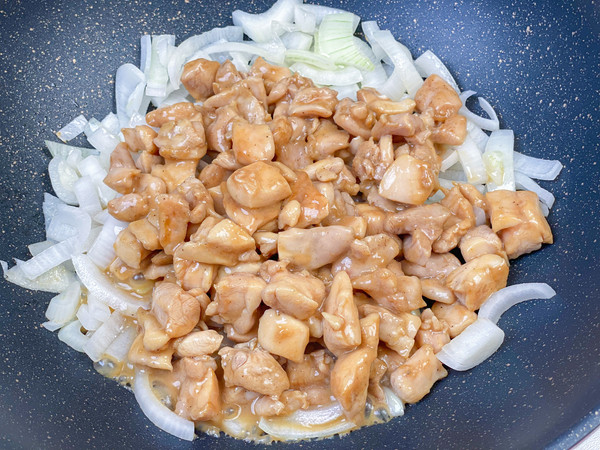 鸡腿肉切块 加1勺盐 1勺生抽 1勺料酒 1勺淀粉 适量黑胡椒粉 拌匀后腌20分钟左右。