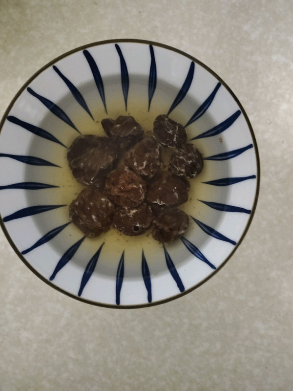 加泡话梅的水和话梅,炖半个小时以上至软烂,加盐调味