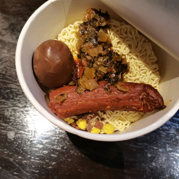 包装撕开,配料包撕开放入,卤蛋红肠放入