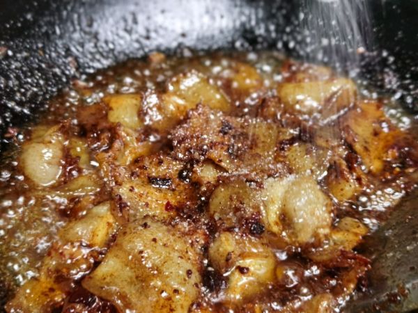 放入豆瓣酱继续炒香,加酱油,蚝油,糖翻炒均匀