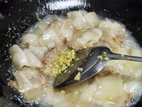 炒肉,小心别被爆到了,保护好自己的脸和手,炒到肉微卷下入料酒