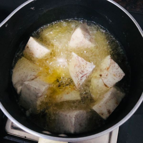 表皮成金黄色,拿筷子轻轻一措能过芋头 捞起,备用