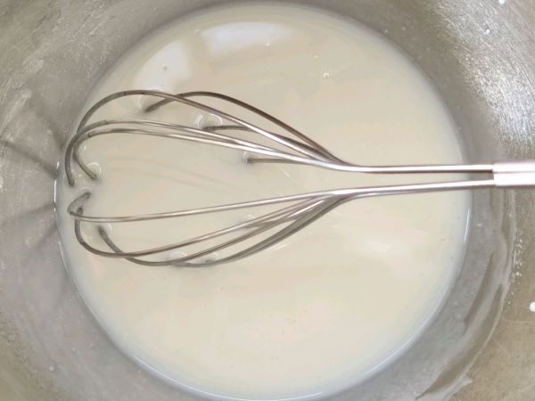筛入低筋面粉,用蛋抽划Z字混合均匀,加入蛋黄翻拌至顺滑无颗粒
