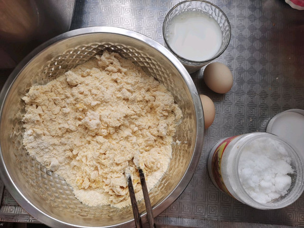 两种面粉混合打入鸡蛋