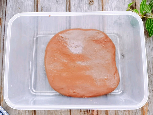 醒发到两倍大后分割成2等粉,分别滚圆松弛20分钟。面团醒发期间把巧克力币切碎备用。