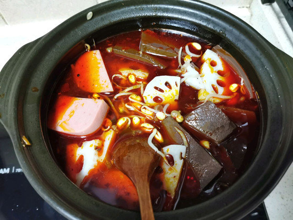 把食材准备好,烧一锅水,把豆芽,藕片,鸭血焯水。