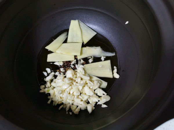 放入半块火锅底料炒一下,再加上酱油,耗油