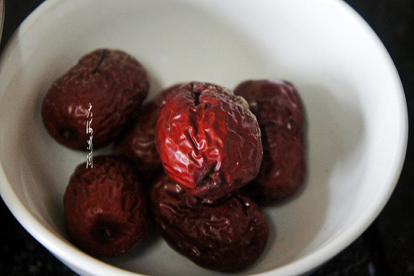 准备红枣:这枣个头很大,需要提前浸泡10分钟左右,略有涨发,然后清洗干净,否则大枣太干,感觉洗不干净。