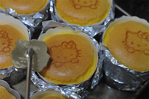 烙铁放在煤气灶上烧热,趁热烙上烙印。 注意,等蛋糕冷却后表面不那么硬的时候再烙,免得花纹周围有小裂纹。