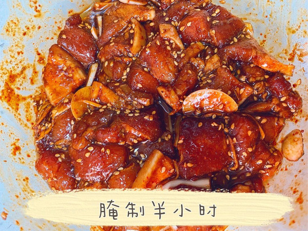 加入生抽 老抽 耗油 辣椒粉 孜然粉 白糖 盐 白芝麻 油