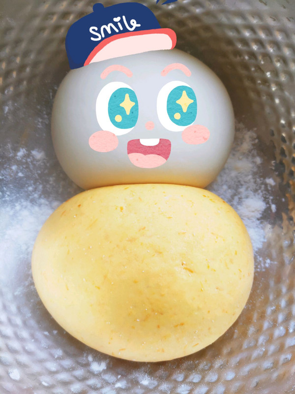 去皮切块蒸熟捣成泥凉温,➕面粉发酵粉活成一块黄色的面。再活一块白色的面