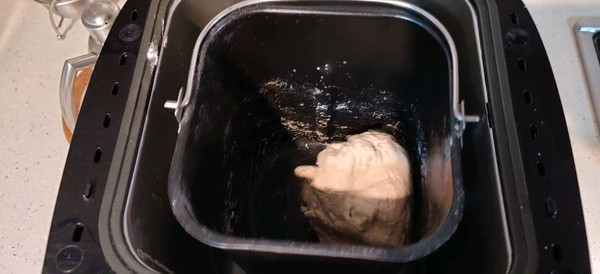 面包机和面5分钟 就好。通常面包机的和面是12-15分钟,但是走完全程的面团混的太平滑。这一步不一定要面包机,用手和也可以。