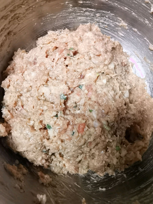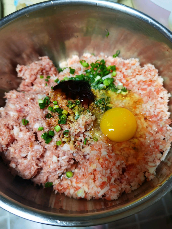 把前夹肉(瘦肉多一点)胡萝卜,藕搅碎,加入一个鸡蛋,耗油,生抽,盐,白胡椒粉,葱花