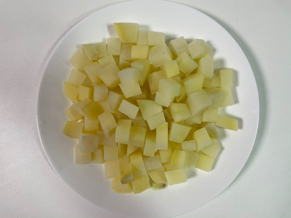 土豆去皮切丁,水开下锅煮三分钟捞出