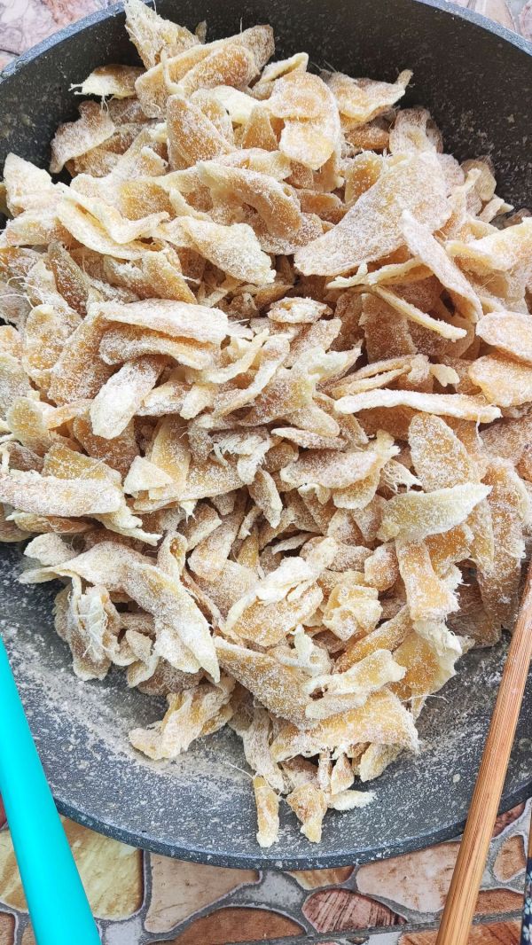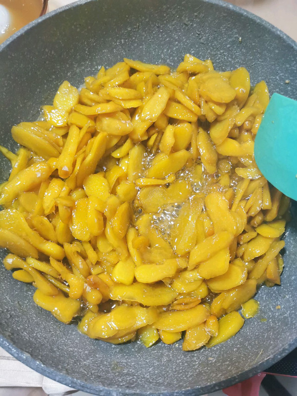 带冷却后锅中的生姜片上就会挂满了糖霜
