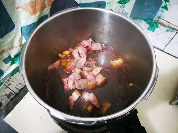 差不多熟加一点耗油,一点生抽,一点点卤完肘子的汤汁大火段生就可以出锅了