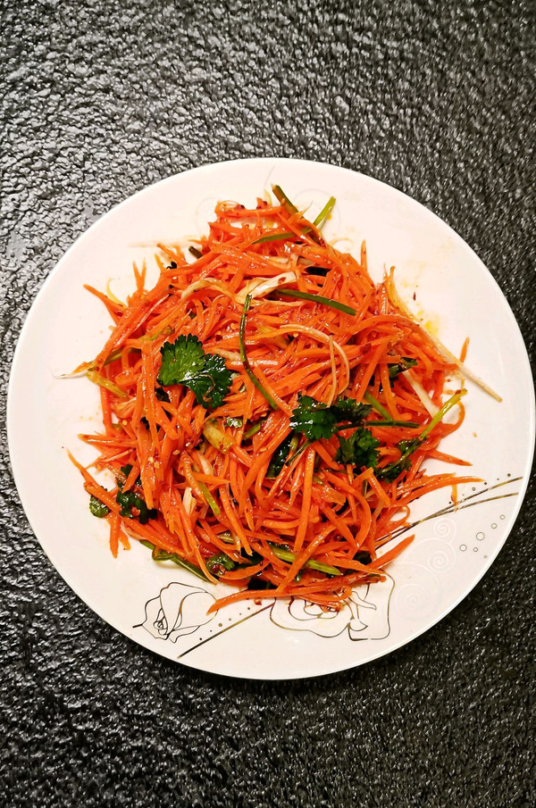 加入白醋生抽、白糖、辣椒油,葱丝、香菜。搅拌均匀。