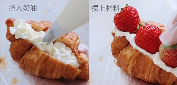 10.一次在可颂面包中加入奶油和材料,即可完成