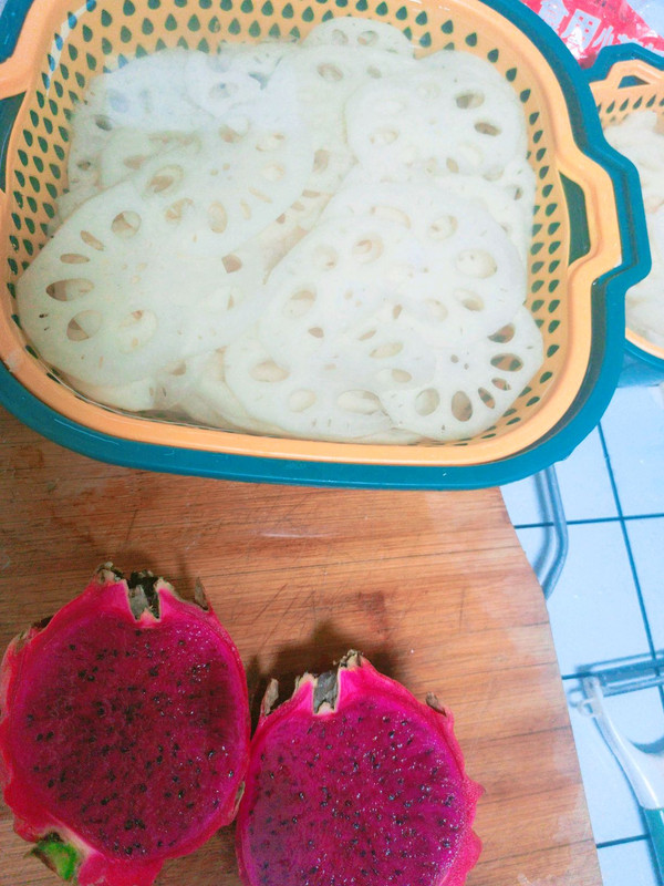 放入莲藕浸泡一夜。上面压一个碟子,以免漂浮起来