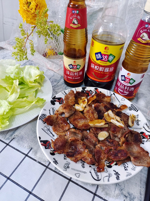 两面金黄后即可出锅装盘,拿一片生菜放2片肉包起来开吃吧,对无肉不欢的孩子来说很适合,也可以吃点蔬菜。