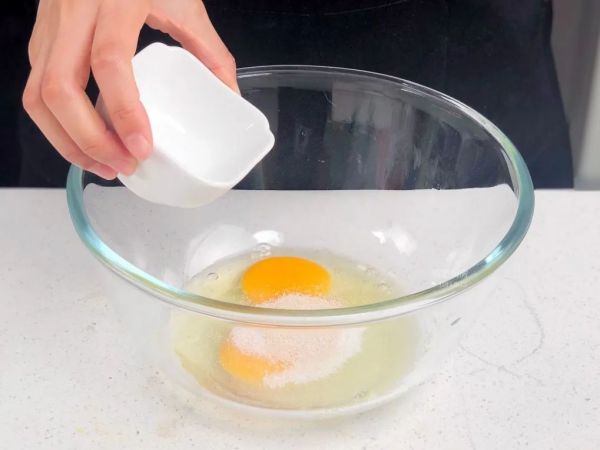 碗中打人2个鸡蛋、3克酵母粉、20克白糖、搅打均匀;