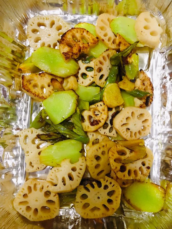 莲藕、莴笋、青椒切好