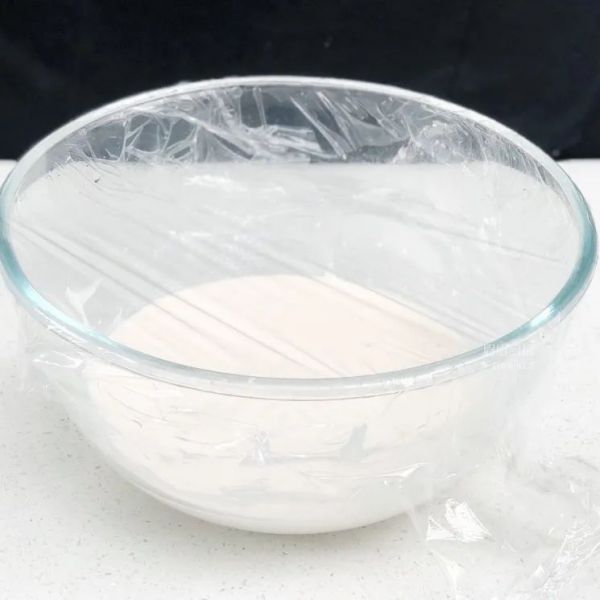 盖上保鲜膜温室醒发两倍大,醒发好的米糊表面有很多小气孔;