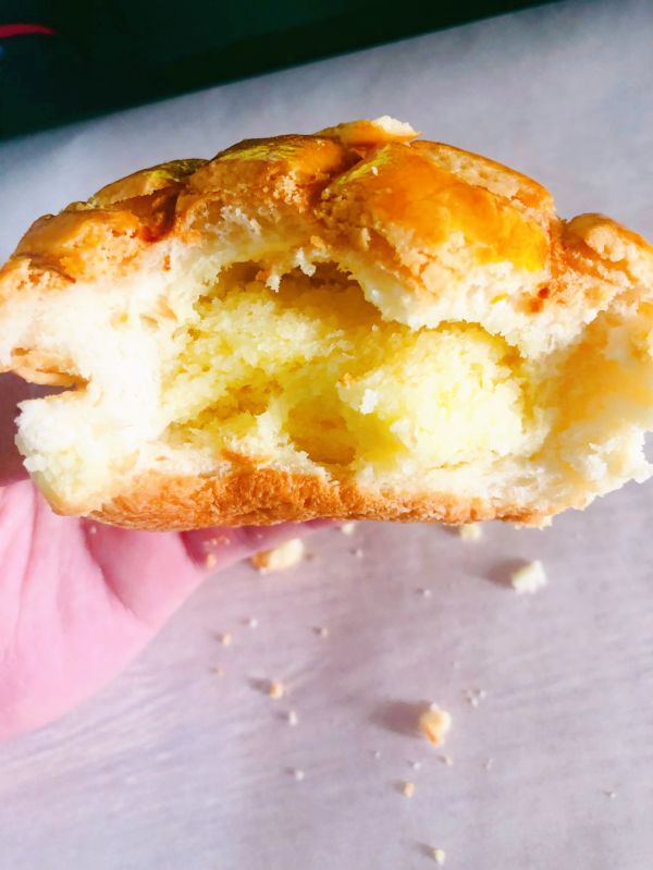 试吃一下,表皮酥脆,面包柔软,里面是满满的馅料。