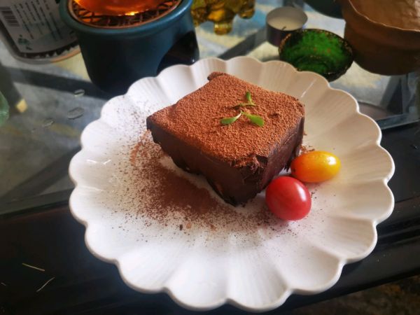 搅拌至顺滑无颗粒,看起来丝滑光亮就倒入模具。放冰箱冷藏冷却2小时以上,拿出来脱模筛上可可粉就可以吃了。